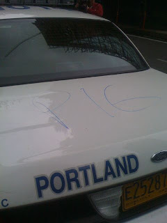 One of three hit last night.One car, a Starbucks and other businesses have been previously hit by these anti greedy people: