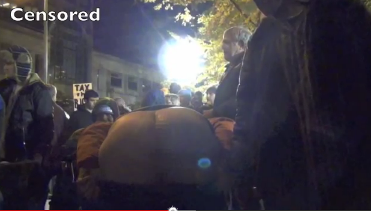 The professional protester who apparently will drop his pants busy life to protest anywhere is seen in the following video ‘mooning’ Tea Party members at the so called “Family Friendly” Occufest (Sam Adams’s planned clash with police in November). See it below.