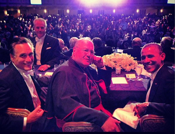 His wind up begins with observing how nice it is to sit at dinner with people from both the public and private sectors and then gives the Catholic Church thanks for all the good it does–to sustained applause–though this man has done more to deconstruct the good that the Catholic Church does than any other previous President through his HHS mandates in ObamaCare.
