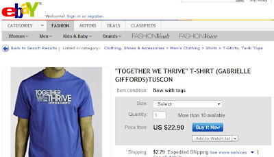 “A portion of the proceeds from the sale of each shirt will be donated to the care and rehibiliation of the victims of the tragic Tuscon shooting.